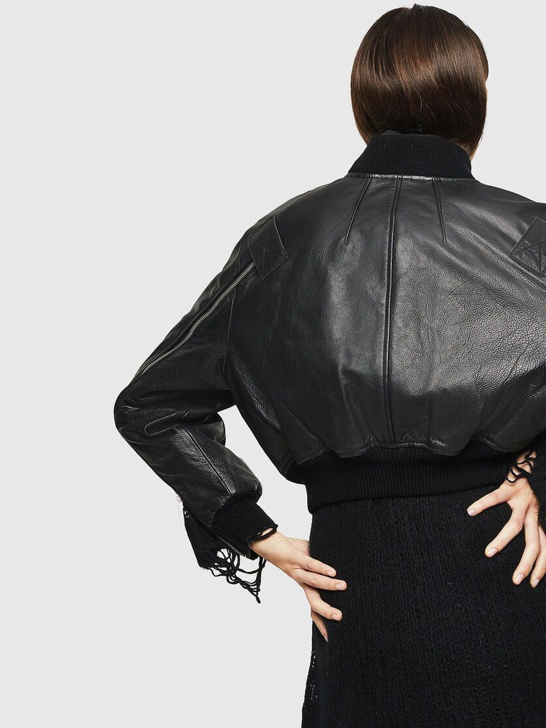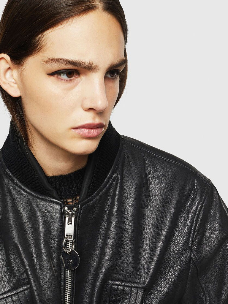 DIESEL L-MANUA Leather biker jacket with zip sleeves