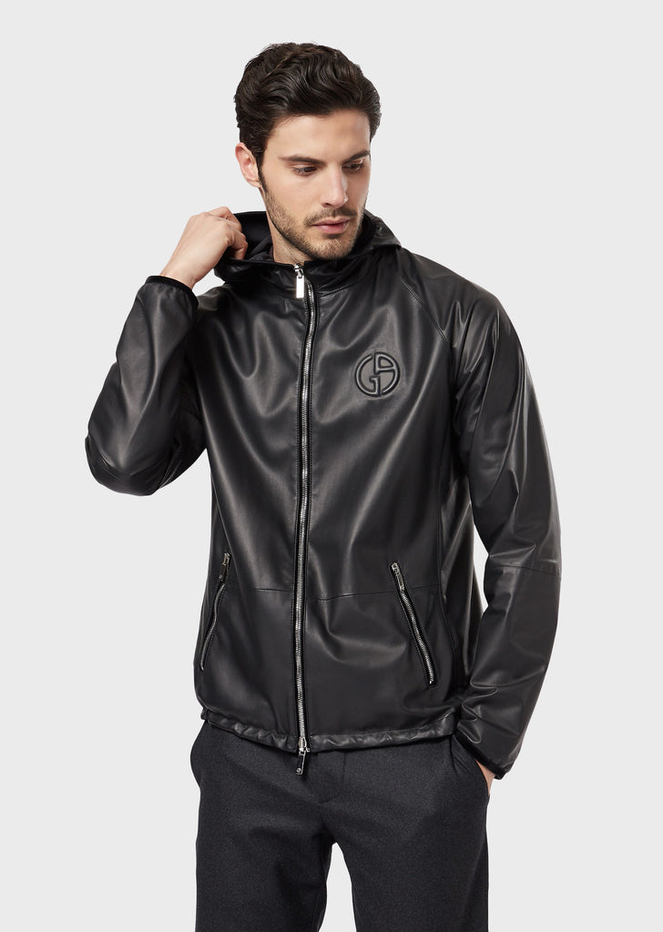 GIORGIO ARMANI Reversible blouson with hood in nappa leather and fabric