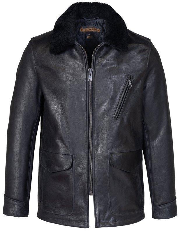 Schott Nyc Waxy Buffalo Car Coat with Mouton Collar