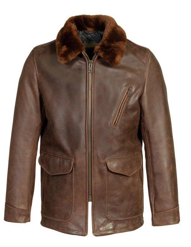 30" medium weight 40's style waxy buffalo car coat with mouton collar. Features zip front closure, upper zippered pocket, lower 2-way pockets with flaps, bi-swing back and diamond quilted nylon lining.